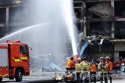 현재 불이 남아있는 곳은 붕괴 위험이 있어 장비를 동원해 낙하물을 제거한 뒤 진화할 계획이다.