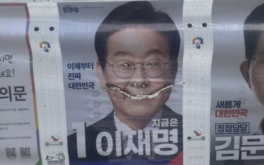 파주서 이재명 후보 벽보 훼손. 사진=연합뉴스 |