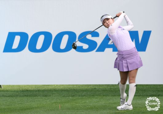 이예원이 18일 강원 춘천 라데나CC에서 열린 '제17회 두산 매치플레이' 4강전 2번홀에서 티샷하고 있다. / KLPGA 제공 |