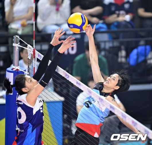 [OSEN=인천, 이대선 기자] 18일 오후 인천 삼산월드체육관에서 ‘KYK 인비테이셔널 2025’가 열렸다. KYK 인비테이셔널은 김연경이 직접 초청한 세계 정상급 선수들이 한자리에 모이는 배구 이벤트 매치이다. 2세트 팀 월드 플레움짓 틴카오우가 공격을 시도하고 있다. 2025.05.18 /sunday@osen.co.kr