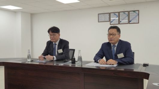 정준철 현대차 제조부문장 부사장(왼쪽)과 김언수 현대차 인도·아중동대권역장 부사장. 킹 압둘라 경제도시 한창호 기자 |