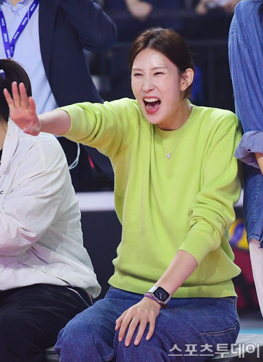 김수지가 김연경 마지막 경기를 찾아와 인사를 하고 있다.