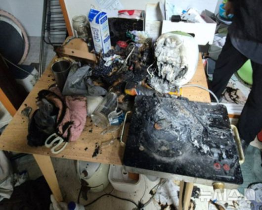 18일 오전 인천 서구 금곡동 한 빌라에서 반려묘가 전기레인지(하이라이트)를 작동시켜 발생한 것으로 추정되는 불이 났다. /사진=인천소방본부 제공 |