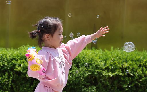 화창한 날씨를 보인 18일 서울 송파구 석촌호수를 찾은 어린이가 비눗방울 놀이를 하고 있다. 뉴스1 |