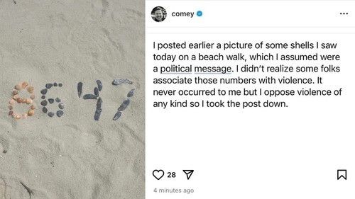 코미 전 국장은 게시물이 논란을 일으키자 삭제한 후 “어떤 사람들이 이 숫자들을 폭력과 연관시킨다는 점을 깨닫지 못했다. 나는 그런 생각은 해 본 적이 없지만 일체의 폭력에 반대하기 때문에 게시물을 내렸다”고 해명했다. 코미 전 국장은 트럼프 대통령 첫 집권 당시 FBI 국장으로 있으면서 러시아 정부 관계자들과 2016년 트럼프 대통령 선거운동본부 관계자들 사이에 연관이 있다는 주장을 수사했다. 이것이 트럼프 대통령의 분노를 샀고, 2017년 법정 임기를 남긴 상황에서 해임됐다. 이후 코미 전 국장은 자신이 트럼프 대통령 재임 중 겪은 일들을 소개하면서 트럼프 대통령을 비판하는 활동을 적극적으로 벌여왔다. 이 때문에 트럼프 대통령 지지자들 사이에서는 ‘공적’으로 통한다.