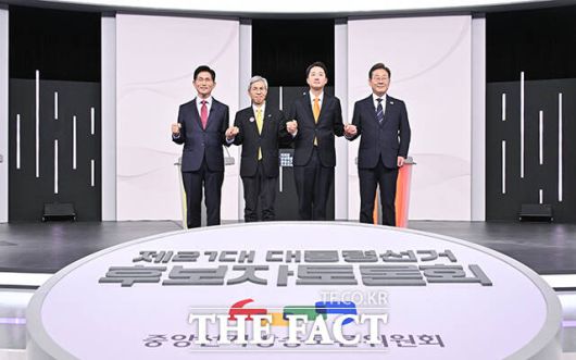 [더팩트ㅣ남윤호 기자] 제21대 대통령선거에 출마한 이재명 더불어민주당, 김문수 국민의힘, 이준석 개혁신당, 권영국 민주노동당 대선 후보가 18일 열린 첫 TV토론에서 '경제'를 주제로 격돌한다.