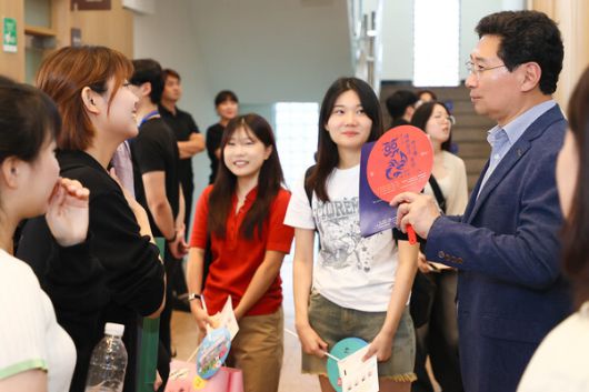 이상일 용인시장이 작년 7월 제1회 대한민국 대학연극제 서경대 출품작 '다만 낭만'을 관람하고 의견을 나누고 있다. [사진=용인특례시] |