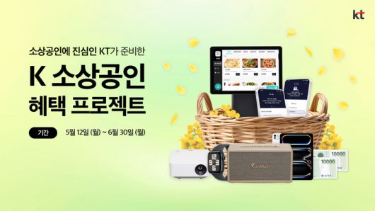 [스포츠서울 | 표권향 기자] KT가 6월30일까지 소상공인을 위해 ‘K소상공인 혜택 프로젝트’를 진행한다고 18일 밝혔다. 이는 소상공인의 매장 운영 고민을 덜고, 디지털 기술로 효율적인 사업 운영을 지원하기 위해 마련한 행사다.