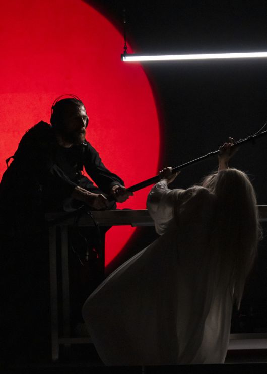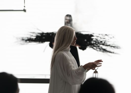 어둠이 내리기 시작한 17일 저녁. 서울 역삼동 GS아트센터 3층 로비에서 입장을 기다리던 관객들 사이로 중세 유럽의 수도사 혹은 사신처럼 보이는 길고 검은 옷의 남성이 서서히 걸어 들어왔다. 그의 허리에는 총알 모양의 벨트가 감겼고 작은 종과 금속 메달 등 장신구가 매달려 걸음을 옮길 때마다 은은한 종소리가 울렸다. 사신의 낫 대신 기다란 붐 마이크를 손에 쥔 남성은 긴 줄을 선 관객 사이를 이동하며 때로는 마이크를 관객에게 향하기도 했다. 지금부터 죽음의 세계로 초대하겠다고 말하는 듯한 그의 몸짓을 따라 관객들도 자연스레 검은 장막이 드리워진 비일상의 공간으로 들어섰다.