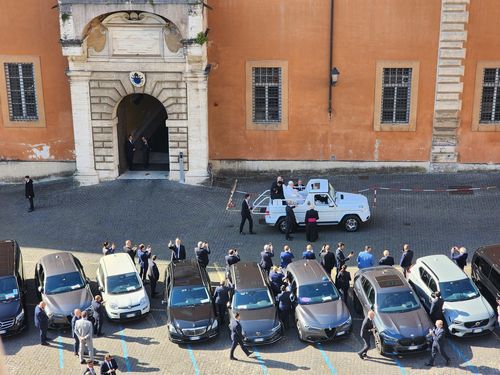 후임인 레오 14세 교황은 포프모빌에서 내려오지는 않았지만 신자들에게 미소 지으며 손을 흔들어 인사했고, 아기를 들어 올리는 모습도 목격됐다. 다른 신자의 머리에 손을 얹어 축복하기도 했다. 광장에는 "교황 만세'(Viva il Papa)가 울려 퍼졌다.