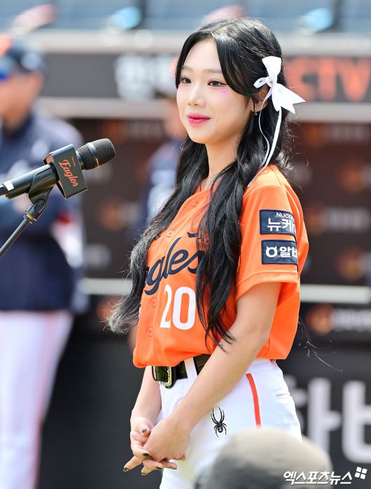 (엑스포츠뉴스 대전, 김한준 기자) 18일 오후 대전 한화생명 볼파크에서 열린 '2025 신한 SOL Bank KBO리그' SSG 랜더스와 한화 이글스의 경기, 경기 전 지아영 치어리더가 애국가 제창을 준비하고 있다.김한준 기자 kowel@xportsnews.com