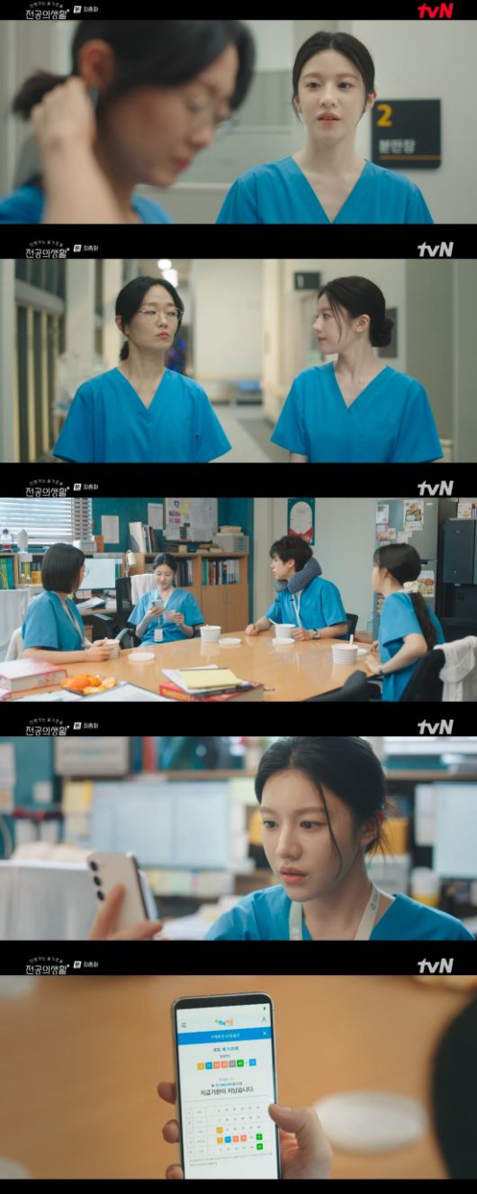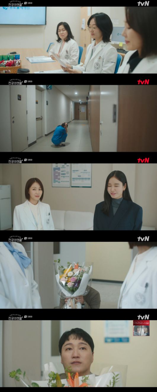 이날 서정민(이봉련)은 오이영과 수술을 마친 뒤 "낮엔 엉망이더니 갑자기 뭐야?"라며 물었다. 오이영은 "그게요. 맨날 못 하는 것도 좀 쪽팔리고 잘못하는 건 전데 피해를 입는 건 산모라고 생각하니까 좀 무서워서 영상 찾아보고 그랬습니다. 찾아보기만 한 거 아니고 연습도 하는데 허공에"라며 밝혔다.