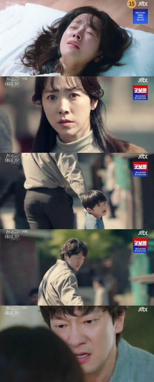 18일 방송된 JTBC 토일드라마 '천국보다 아름다운' 10회에서는 솜이(한지민 분)가 과거 기억을 되찾고 고낙준(손석구)을 의심하는 모습이 그려졌다.