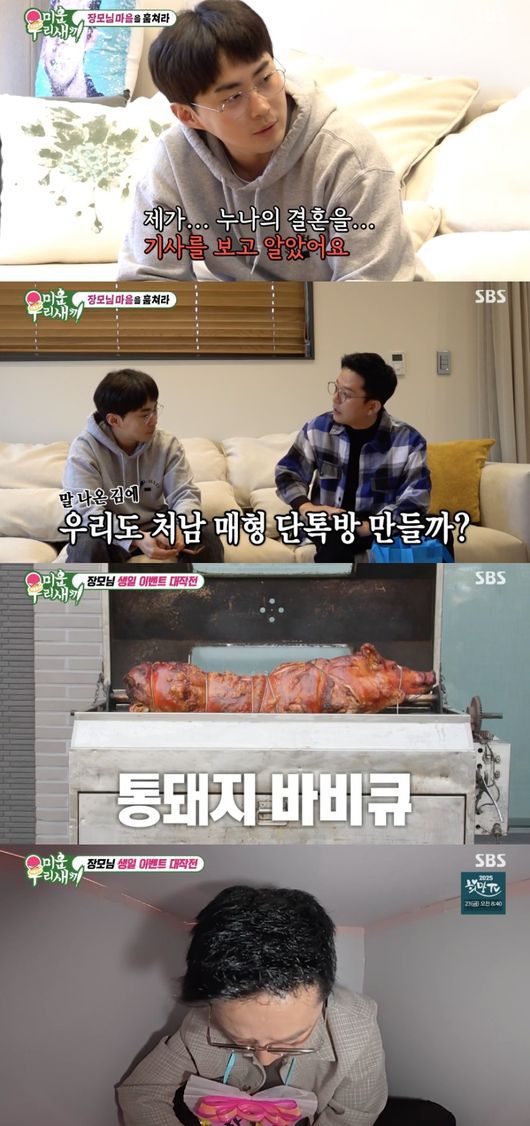 본격적으로 장모님 집에 도착한 김준호는 김지민 동생인 예비 처남과 함께 생일 파티를 준비했다. 준비하는 동안 김준호는 자신을 매형이라고 부르라고 했지만, 예비 처남은 “아직도 형이라고 부를 거다. 결혼하기 전이지 않냐”라고 선을 그었다.