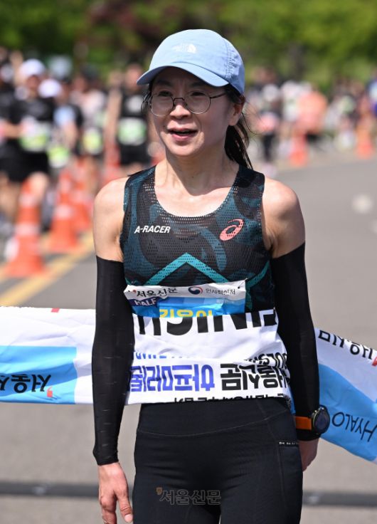 지난 17일 열린 ‘2025 서울신문 하프마라톤대회’ 하프 코스에서 여자 부문 1위의 영광을 차지한 김은아(50)씨는 가쁜 숨을 몰아쉬면서도 미소를 잃지 않았다.
