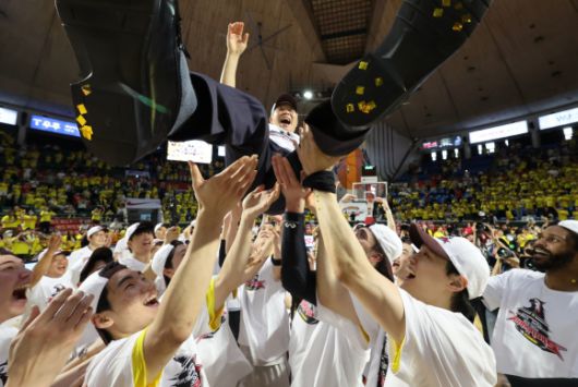 부임 3년 차에 처음 챔프전을 경험한 조상현 감독은 선수(2000년 SK), 코치(2016년 고양 오리온스), 사령탑으로 모두 우승하는 대기록을 썼다. 전희철 SK 감독, 김승기 전 고양 소노 감독에 이어 역대 3번째다. 이재도(소노), 이관희(원주 DB) 등 베테랑들을 내보내고 젊은 선수들로 팀을 재편한 그의 승부수가 적중했다.