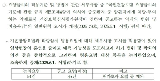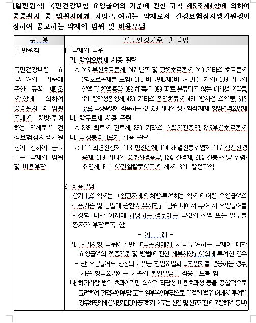 ◇ 복지부, 항암제 병용요법 부분급여 급여 고시 개정…암환자들 “숨통 트였다”