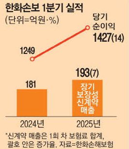 18일 금융감독원 전자공시시스템에 따르면 한화손보는 올해 1분기 당기순이익 1427억원을 기록하며 전년 동기와 비교해 14% 신장했다. 손보사의 핵심 경쟁력인 장기 보장성 상품에서 신계약 매출 193억원을 올리며 전년 동기 대비 7% 성장한 것이 긍정적 영향을 미쳤다. 반면 같은 기간 삼성화재·DB손해보험·메리츠화재·현대해상 등 주요 손보사는 순이익이 최소 5%에서 최대 57%까지 감소했다.