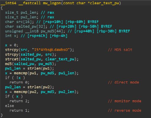 BPFDoor 샘플의 logon() 함수. 출처=트렌드마이크로 위협 분석가 페르난도 메르세스(Fernando Merces)