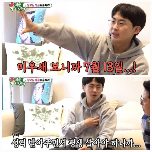 18일 방송된 SBS 예능 ‘미운 우리 새끼’(이하 ‘미우새’)에서는 김지민의 남동생이 깜짝 등장해 누나와 예비 형부 김준호의 결혼을 앞두고 현실적인 농담과 진심을 오가는 멘트로 웃음을 자아냈다.