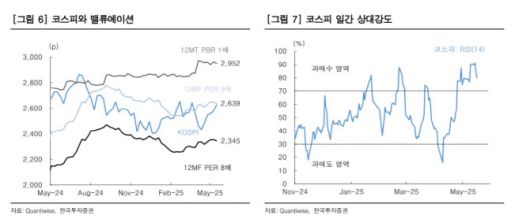 한국 증시도 유사한 흐름을 보일 것이라는 전망이다. 코스피는 4월 초 저점에서 벗어나며 2600포인트 선 위에서 움직이고 있다. 지수가 오르며 밸류에이션 배수도 높아졌다. 16일 기준 12개월 선행 PER은 8.96배로 단기 저항인 9배를 바로 앞에 두고 있다. 저항선 돌파를 시도할 시점에서 미국발 악재가 노출됐기에 약세 압력을 피하기는 어렵고, 시장이 과매수 상태에 있기에 더욱 민감하게 반응할 수 있다는 것이 김 연구원의 설명이다.