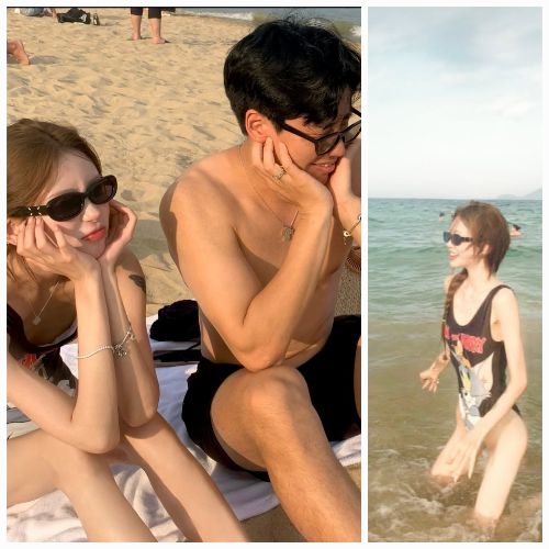이어 공개된 또 다른 사진에서는 반라 차림의 남성과 같은 포즈로 해변을 바라보며 나란히 앉아 있는 모습이 눈길을 끌었다. 특히 두 사람이 나란히 커플 팔찌를 착용하고 있다는 점에서 ‘연인 추정’ 분위기를 풍기며 팬들의 관심을 모았다.