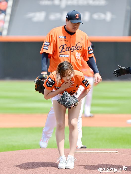 한화의 마무리 투수 김서현에게 시구 지도를 받은 아야카는 선물로 받은 글러브까지 끼고 마운드에 올랐다. 투수 플레이트를 밟고 안정된 자세와 깔끔한 투구 폼을 선보인 아야카는 많은 환호와 박수를 보내준 팬들에게 90도 인사를 하며 마운드를 내려왔다.