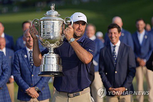 (서울=연합뉴스) 김동찬 기자 = 남자 골프 세계 랭킹 1위 스코티 셰플러(미국)가 시즌 두 번째 메이저 대회인 제107회 미국프로골프협회(PGA) 챔피언십(총상금 1천900만달러)에서 우승했다.
