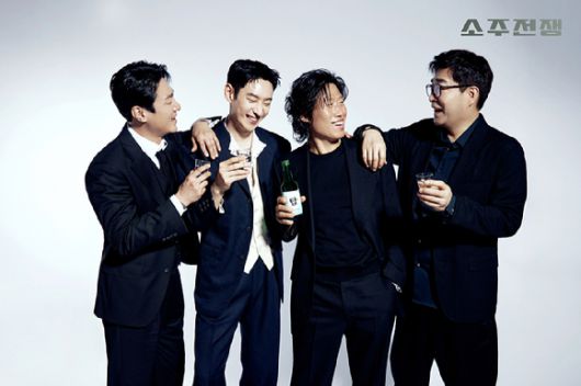 '소주전쟁' 출연 배우들의 반전 매력을 담은 콜라보레이션 화보가 공개돼 시선을 사로잡는다.공개된 화보는 유해진, 이제훈, 손현주, 최영준까지 작품 속 분위기와는 다른 '소주전쟁' 팀만의 화기애애한 케미스트리와 네 배우의 빛나는 아우라가 담겨 있어 탄성을 자아낸다.