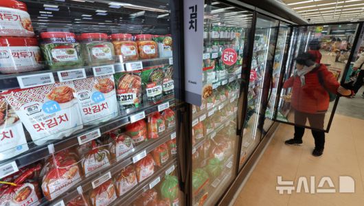 [서울=뉴시스] 김금보 기자 = 13일 서울시내 한 대형마트에 김치 상품이 진열돼 있다. 2025.02.13. kgb@newsis.com
