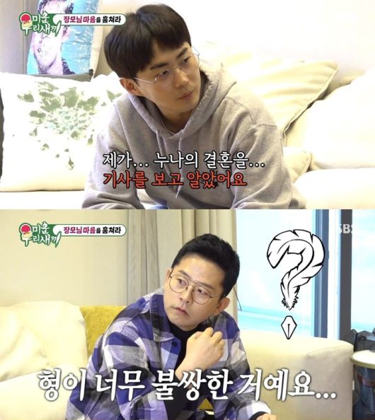 예비 처남은 "누나의 결혼을 기사를 보고 알았다"라며 섭섭함을 토로했다. 그러나 예비 처남은 "누나 성격을 받아주며 평생 산다고 생각하니 형이 불쌍했다. 제가 편이 되어드리겠다"라며 매형에 대한 애정을 드러냈다.