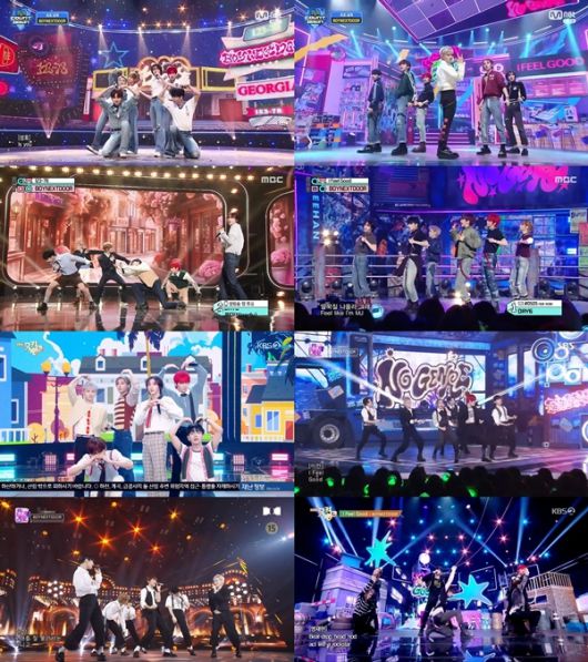 보이넥스트도어(성호, 리우, 명재현, 태산, 이한, 운학)는 지난 15일부터 18일까지 Mnet ‘엠카운트다운’, KBS2 ‘뮤직뱅크’, MBC ‘쇼! 음악중심’, SBS ‘인기가요’ 등에 연달아 출연해 미니 4집 ‘No Genre’의 타이틀곡 ‘I Feel Good’과 수록곡 ‘123-78’ 무대를 선보였다.