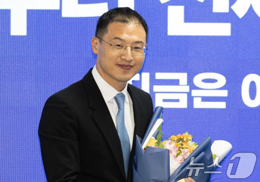 (서울=뉴스1) 이재명 기자 = 더불어민주당에 입당한 김상욱 의원이 19일 오전 서울 여의도 국회 더불어민주당사에서 열린 입당 환영식에서 꽃다발을 손에 들고 미소를 짓고 있다. 2025.5.19/뉴스12expulsion@news1.krCopyright ⓒ 뉴스1. All rights reserved. 무단 전재 및 재배포, AI학습 이용 금지.