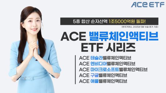 이들 시리즈 상품은 △ACE 테슬라밸류체인액티브 ETF(1조2451억) △ACE 엔비디아밸류체인액티브 ETF(2328억 원) △ACE 마이크로소프트밸류체인액티브 ETF(238억 원) △ACE 구글밸류체인액티브 ETF(219억 원) △ACE 애플밸류체인액티브 ETF(114억 원) 등으로 구성됐다.