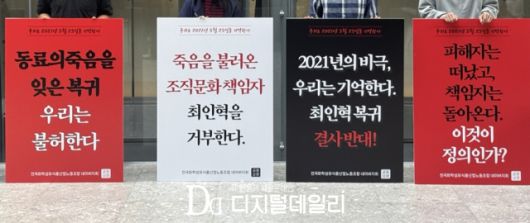 [디지털데일리 채성오기자] "사측이 지난주 발표한 알림 자료는 구성원들을 충격으로 몰아넣었습니다. 구성원을 죽음으로까지 내몰았던 직장 내 괴롭힘에 가장 큰 책임이 있는 최인혁 전 COO가 복귀를 한다는 것이었습니다. 공동성명(네이버 노조)은 오늘부터 최인혁 대표의 복귀를 막기 위해 노동조합이 할 수 있는 모든 조치를 다할 것입니다."