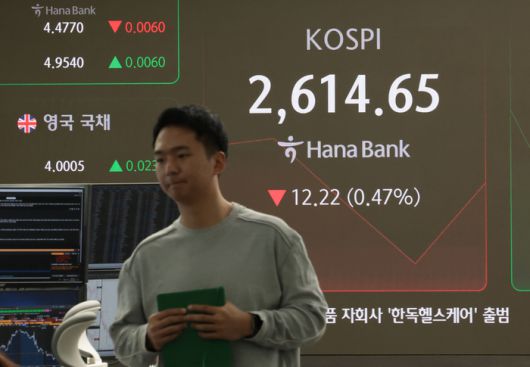 19일 서울 중구 하나은행 본점 딜링룸 현황판에 코스피 등이 표시되고 있다. [사진 = 연합뉴스] |