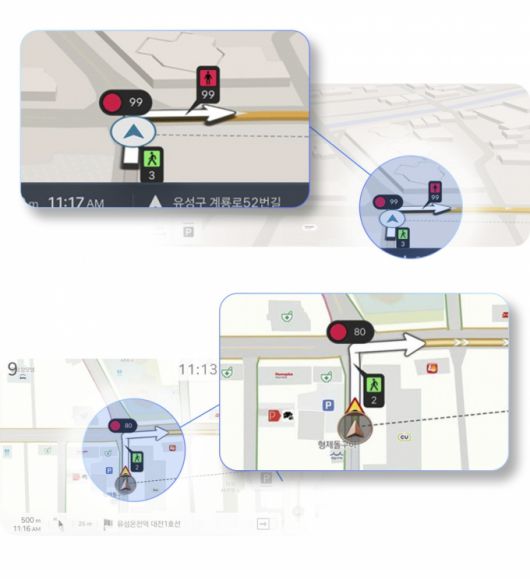 정차 중일 때에도 초록불로 바뀌기까지 몇 초 남았는지를 표시해 주기 때문에 출발을 미리 준비할 수 있어 급출발을 줄이는 데에도 도움이 된다. 또 차량이 횡단보도가 있는 교차로에서 우회전을 해야할 경우, 전방 직진 신호에 대한 정보뿐만 아니라 경로 내 보행자 신호 정보가 함께 표시된다. 운전자는 내비게이션을 통해 적색·황색·녹색 신호 상태와 보행 신호의 남은 시간을 바로 확인하고 더욱 안전하게 주행할 수 있다.