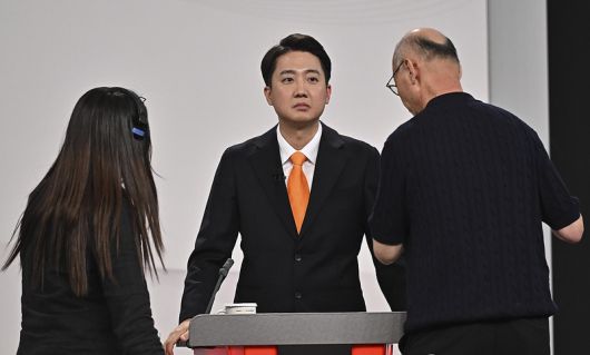 | 개혁신당 이준석 대선후보가 18일 서울 마포구 상암동 SBS 프리즘센터 스튜디오에서 열린 제21대 대선 1차 후보자 토론회를 준비하고 있다. / 사진 = 연합뉴스 [국회사진기자단] |
