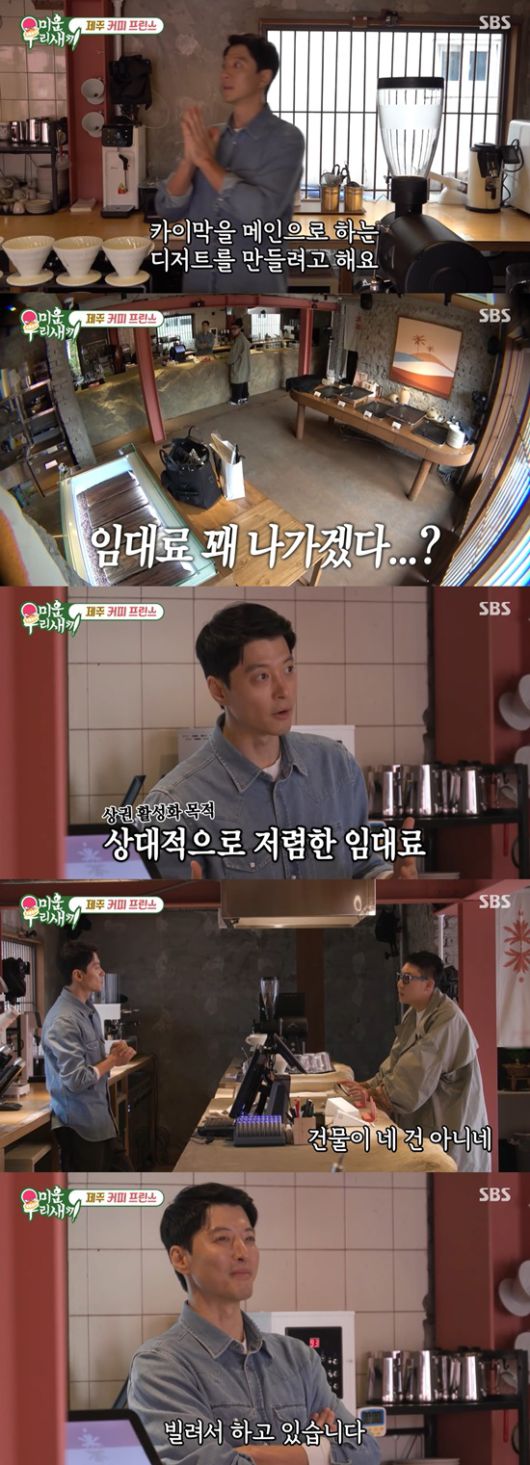 이상민은 카페의 규모와 장비를 살펴보며 "전체적으로 봤을 때는 장비도 그렇고, 이 정도 규모면 임대료가 많이 나갈 것 같다"고 물었고, 이동건은 "아니다. 돈을 많이 들이진 않았다. 애월에 카페 하는 사람들을 위해서 임대료를 싸게 받는 게 활성화됐다"고 답했다.