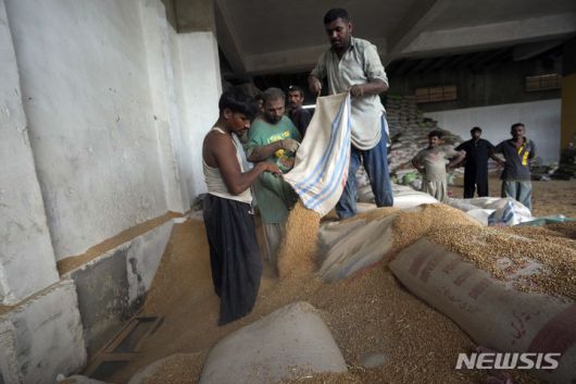 [카라치=AP/뉴시스]2023년 7월26일(현지시간) 파키스탄 카라치의 창고에서 파키스탄 인부들이 밀을 분류하는 모습. 2024.01.06. |