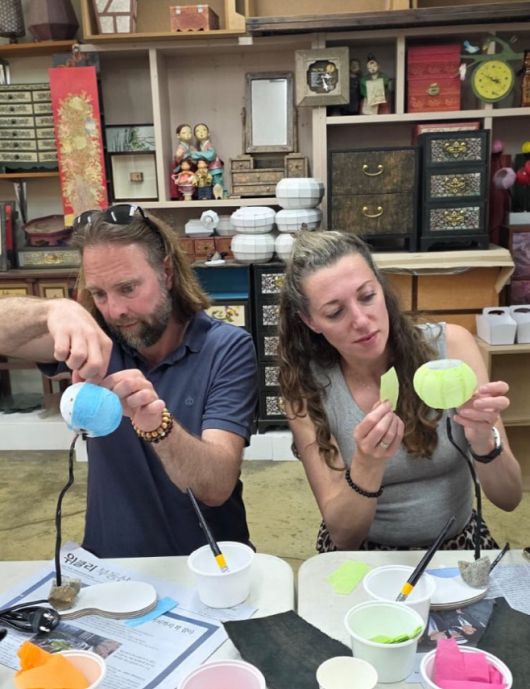 전통 한지 만들기 체험 중인 구미·대양주 여행업계 관계자. / 한국관광공사 제공 |