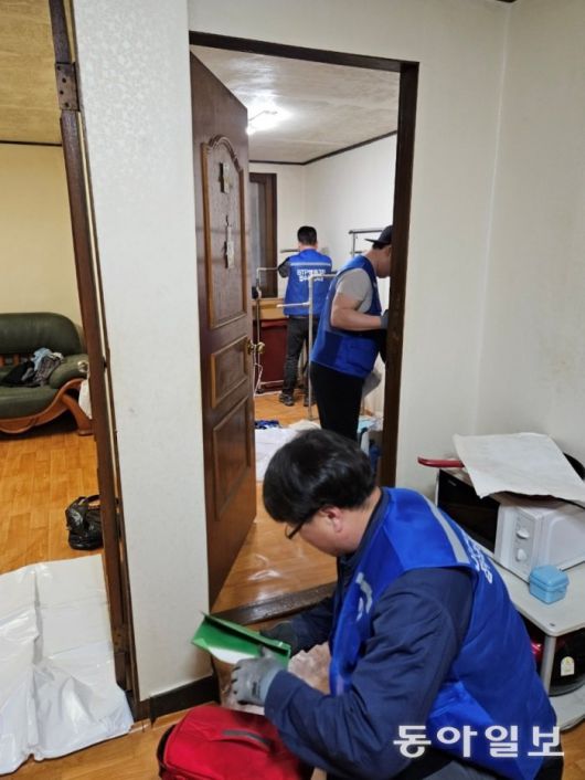 부천테크노파크 쌍용3차관리단 직원들이 부천시 신흥동의 한 다가구주택에서 벽지와 장판을 교체하기 위해 가재도구를 정리하고 있다. 부천시 제공 |