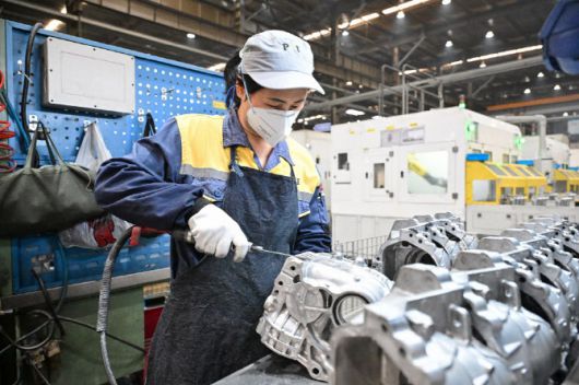 중국 동부 장쑤성 수저우의 한 자동차 부품 공장에서 직원이 일하고 있다. (사진=AFP) |