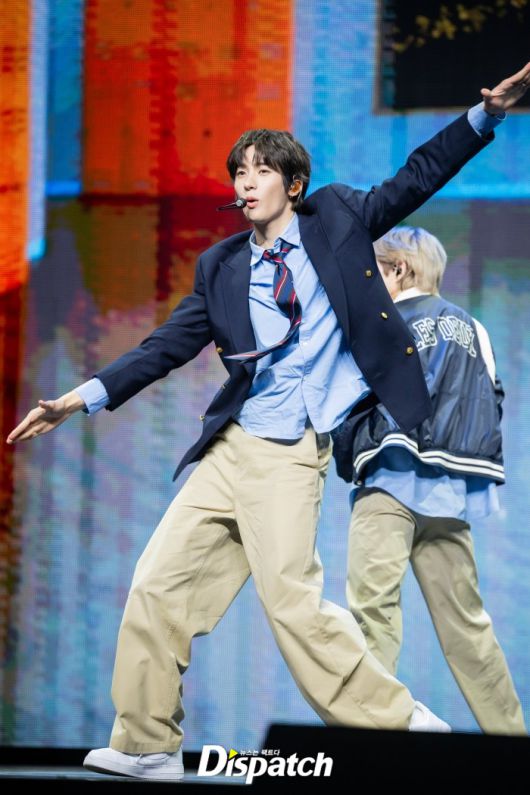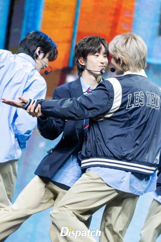라이즈는 스쿨룩 컨셉으로 멋을 냈다. 앤톤은 잘생긴 비주얼로 시선을 사로잡았다.