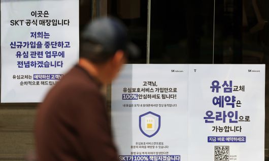 지난 18일 서울시내의 한 SK텔레콤(SKT) 매장에 해킹 사태 관련 안내문이 게시돼 있다. 뉴스1 |