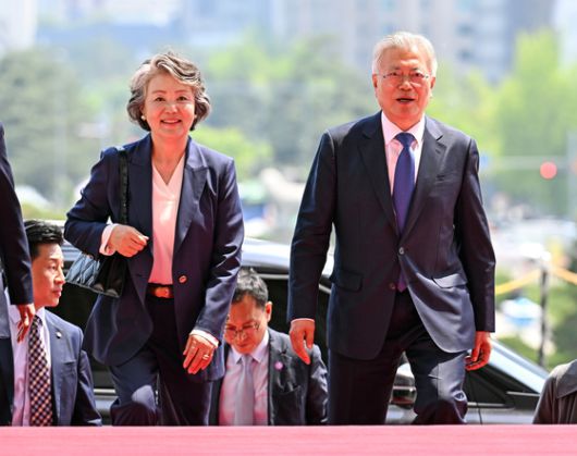 문재인 전 대통령과 김정숙 여사가 지난 4월 25일 국회에서 우원식 국회의장과 면담을 위해 들어서고 있다. 이날 문 전 대통령은 판문점선언 7주년 기념식 참석을 위해 퇴임 후 처음으로 국회를 방문했다. 임현동 기자 |