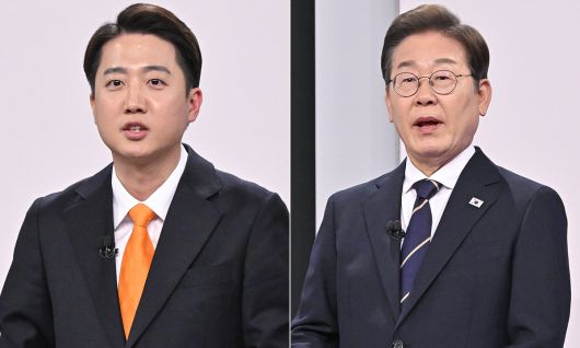 개혁신당 이준석 대선후보(왼쪽), 더불어민주당 이재명 대선후보. 연합뉴스