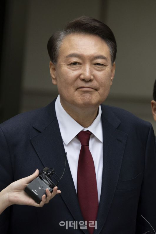[사진공동취재단] 윤석열 전 대통령이 19일 정오 서울 서초구 중앙지방법원에서 열린 내란 우두머리 혐의, 직권남용 권리행사방해 혐의 사건 4차 공판의 오전 재판 종료 후 점심 식사를 위해 나서며 취재진의 질문을 받고 있다. 2025.05.19 사진공동취재단