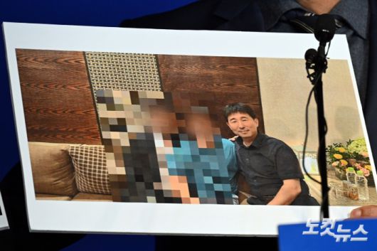 노종면 더불어민주당 선거대책위원회 대변인이 19일 오후 서울 여의도 중앙당사에서 '지귀연 판사 룸살롱 접대 의혹' 관련 사진을 공개하고 있다.