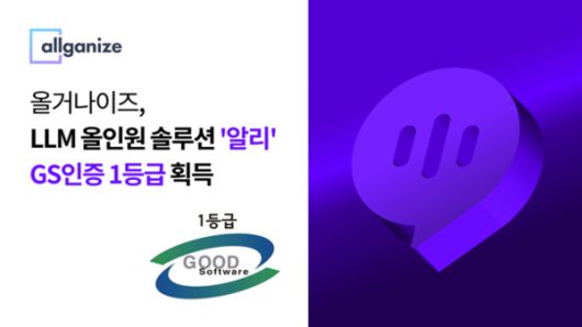 [디지털투데이 황치규 기자]올거나이즈는 자사 LLM 올인원 솔루션 '알리(Alli)'가 한국정보통신기술협회(TTA) 소프트웨어 품질 인증 제도인 GS 인증 1등급을 획득했다고 19일 밝혔다.